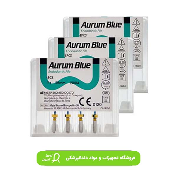 فایل روتاری متا بلو 4 درصد Aurum Blue ساخت کشور کره جنوبی است .این فایل یکی از مقاومترین و در عین حال منعطفترین فایل های روتاری است. همچنین Memory Shape فایل ها قابلیت ورود و شکل دهی به کانالهای Dilaceration را افزایش داده و فشار جانبی به دیواره کانال در حین اندو را کاهش میدهد که باعث حفظ شکل اصلی کانال در ناحیه اپیکالی میشود. نسبت به فایل های یونیورسال دارای دو برابر مقاومت بیشتر است و در سیکل های چرخشی با نرخ کمتری فرسوده میشود و یا می شکند.